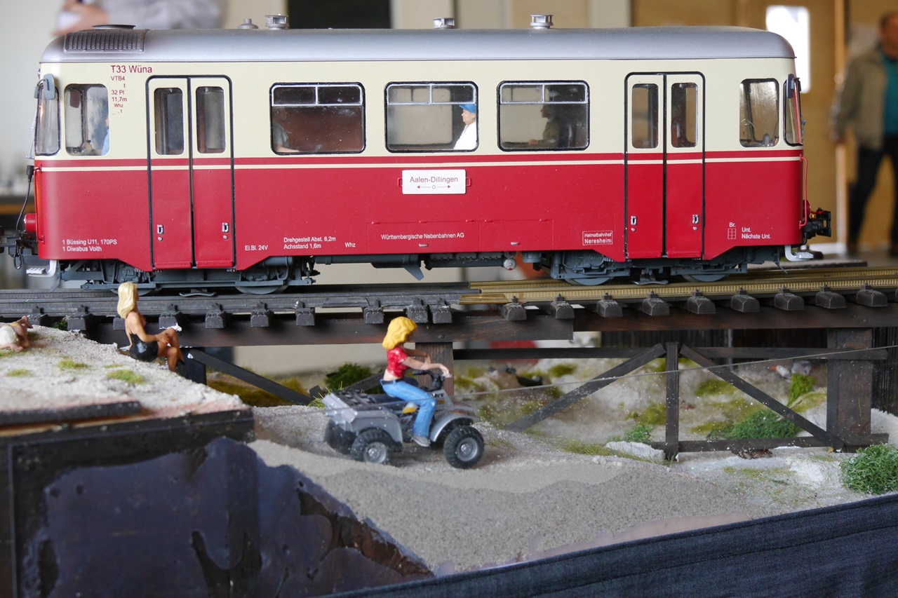Am zweiten Tag war es nicht weniger voll. Auf der Nordseeanlage war ein Schienenbus (VT33) aus der Modellwerkstatt "Schiede" im Einsatz.