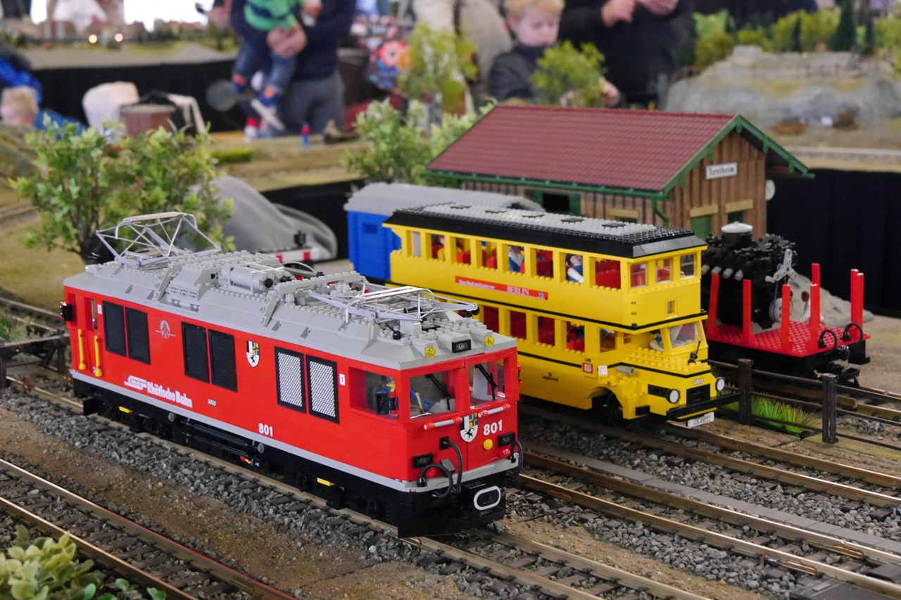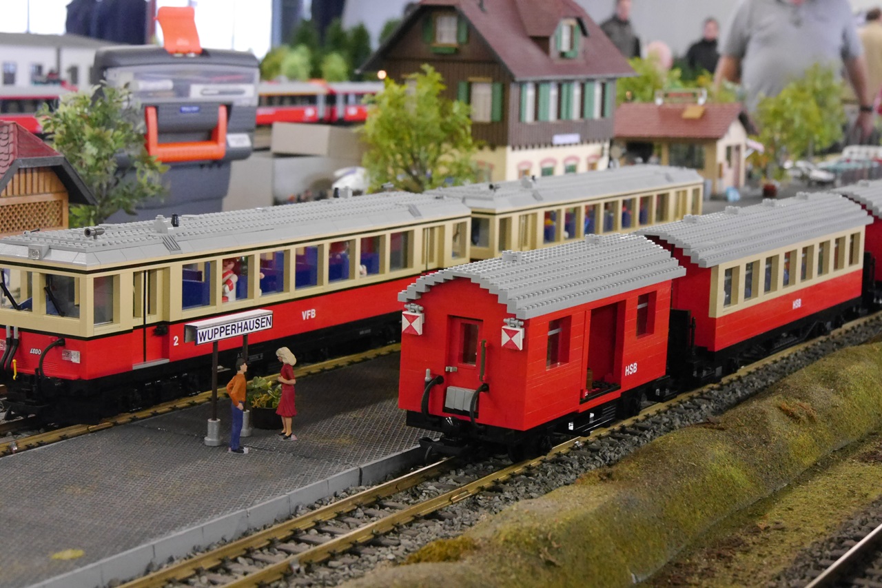 Auf der großen Wuppertaler Anlage drehten wieder viele Züge ihre Runden. Bemerkenswert sind die Fahrzeuge, die aus LEGO gebaut wurden: