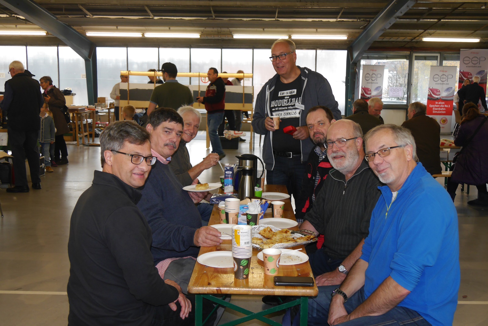kleinen Modulanlage probegefahren. Außerdem war ganz kurz eine Dampflok französicher Abstammung im Einsatz: