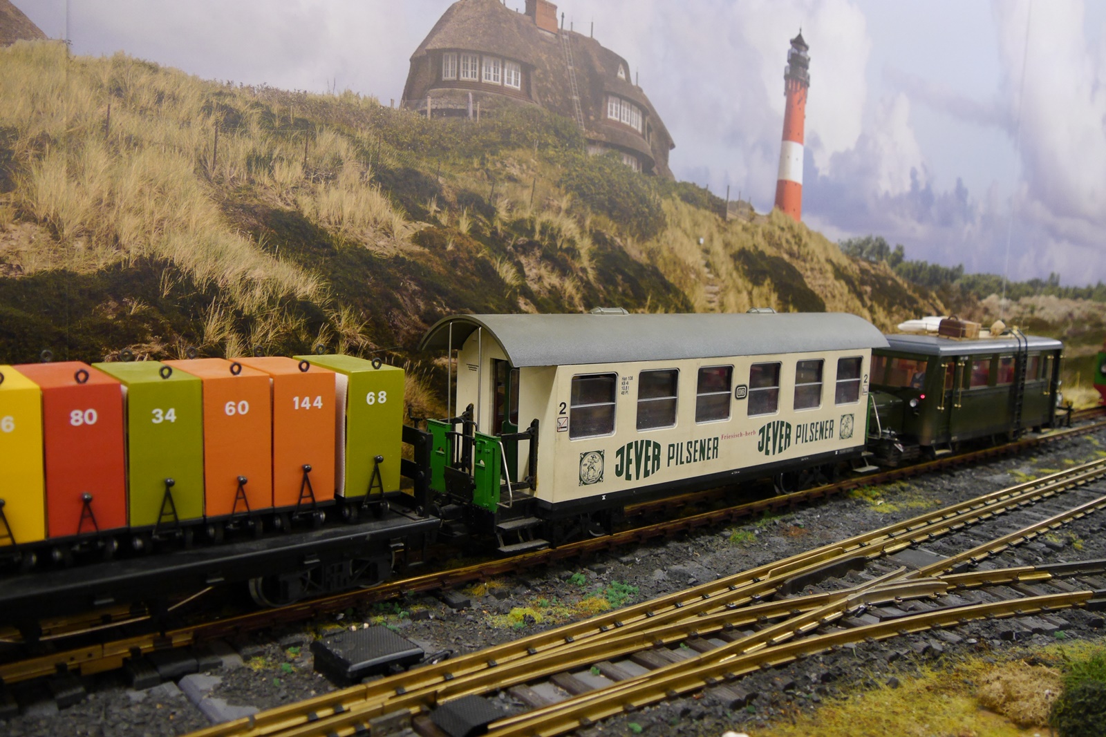 Wie immer in Wuppertal gab es einige Gastfahrzeuge auf der Nordseebahn. So waren wieder zwei Wagen aus dem Wangeroogezug der Wuppertaler zu Gast. Neben dem bekannten Kofferwagen, war es diesmal ein Personenwagen mit Jever-Werbung.