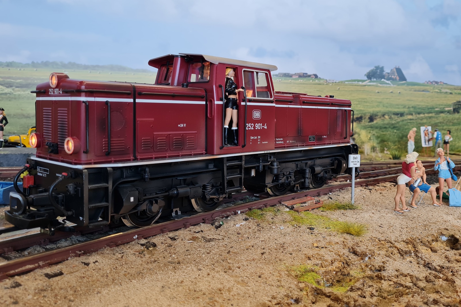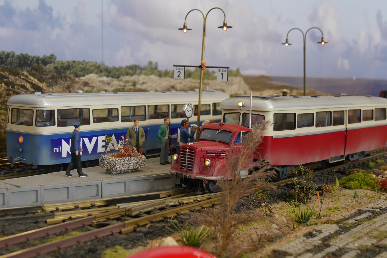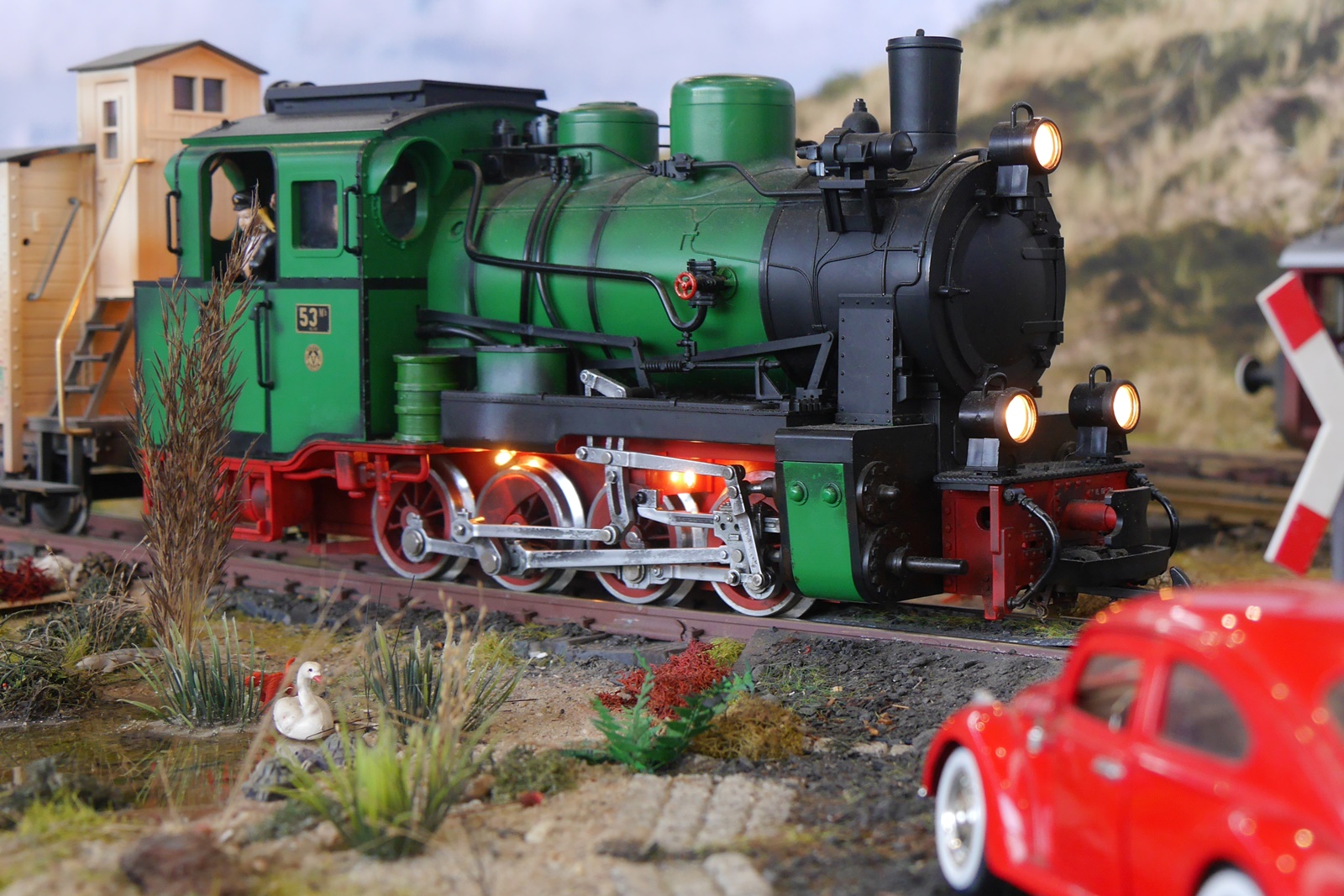 Leider gab es nur weinige Besucher mit Gastfahrzeugen. Lediglich der T1 aus dem Hause Trainline war auf der Anlage unterwegs. Außerdem war kurz ein funktionsfähiges Modell eines Schienenfahrrades zu sehen: