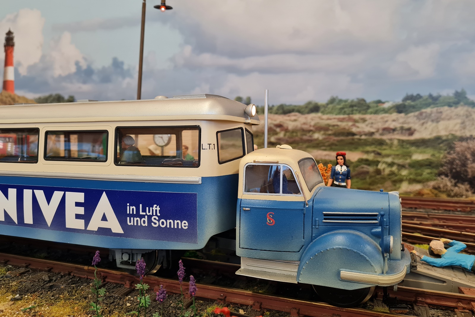 Die Nordseeanlage hatte das Thema "die Schweiz zu Gast an der Nordsee". In unserer fiktiven Geschichte war die schweizer Lok Heidi zu Gast an der Nordsee und dort im Einsatz mit den bekannten Inselbahnzügen.