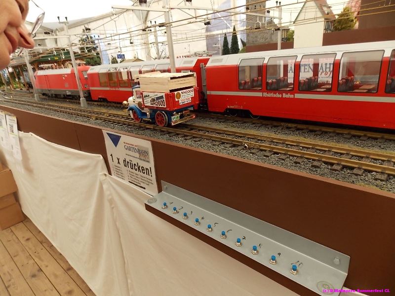 Am 5. und 6. Juli fand in Dormagen bei Champex-Linden ein Sommerfest statt. Diese Veranstaltung findet nur alle 3 bis 5 Jahre statt und hat - mal wieder - viele Freunde der großen Modellbahn nach Nievenheim gelockt. An beiden Tagen war das Festgelände gut besucht. Aus der Branche waren Märklin/LGB, Massoth, Piko, Gartenbahn Profi, Volldampf und der Spur-G-Blog vertreten. Daneben gab es einige private Anlagen bzw. Module zu sehen, die vielleicht den ein oder anderen zum Nachbau anregen.