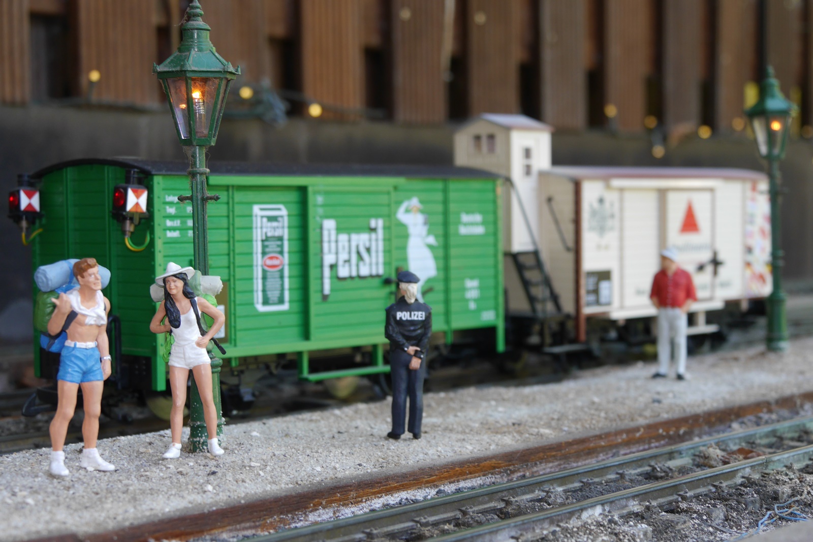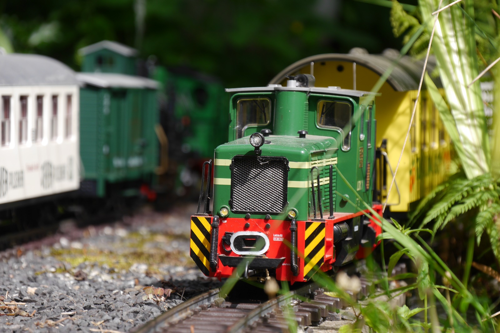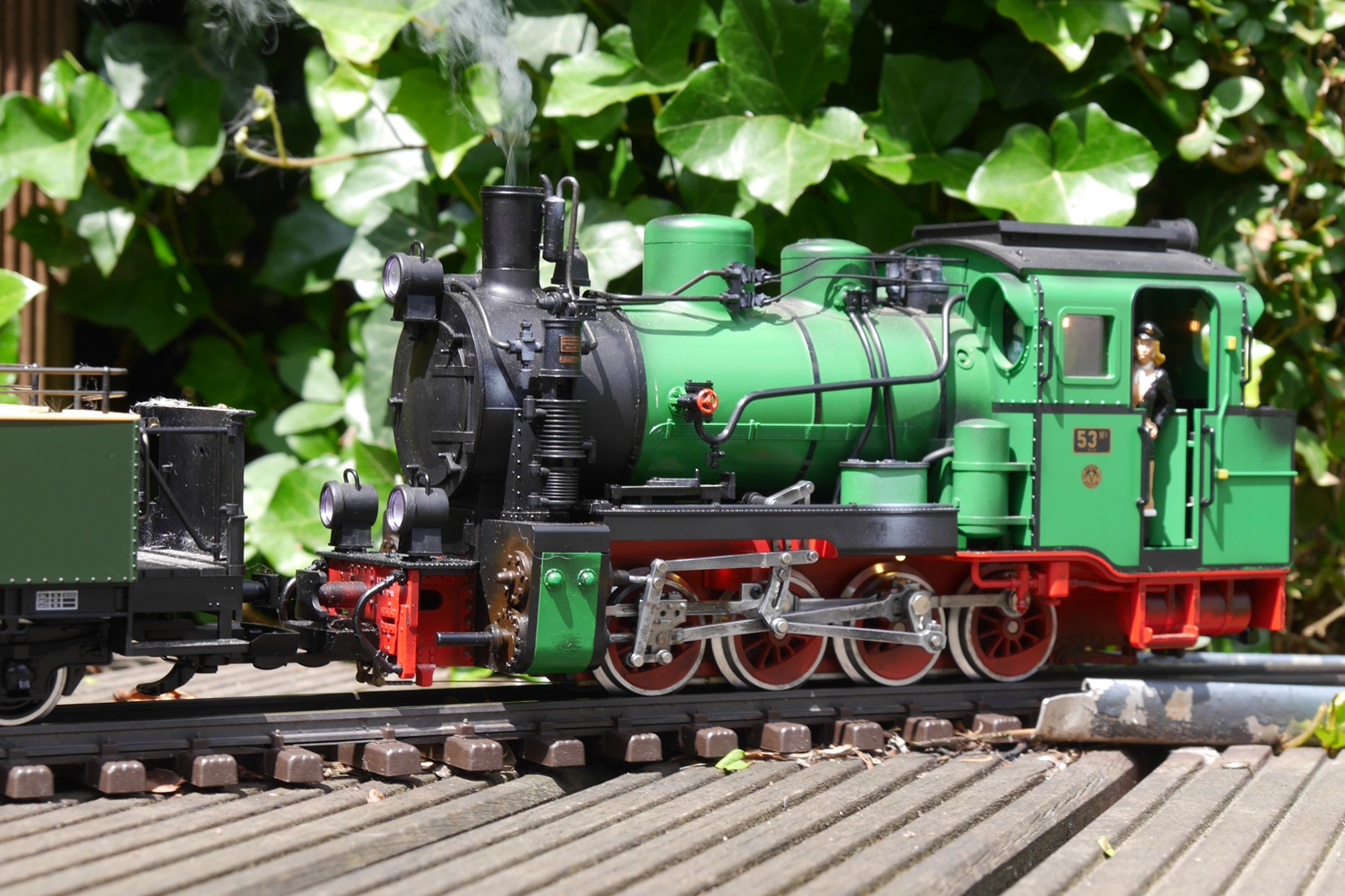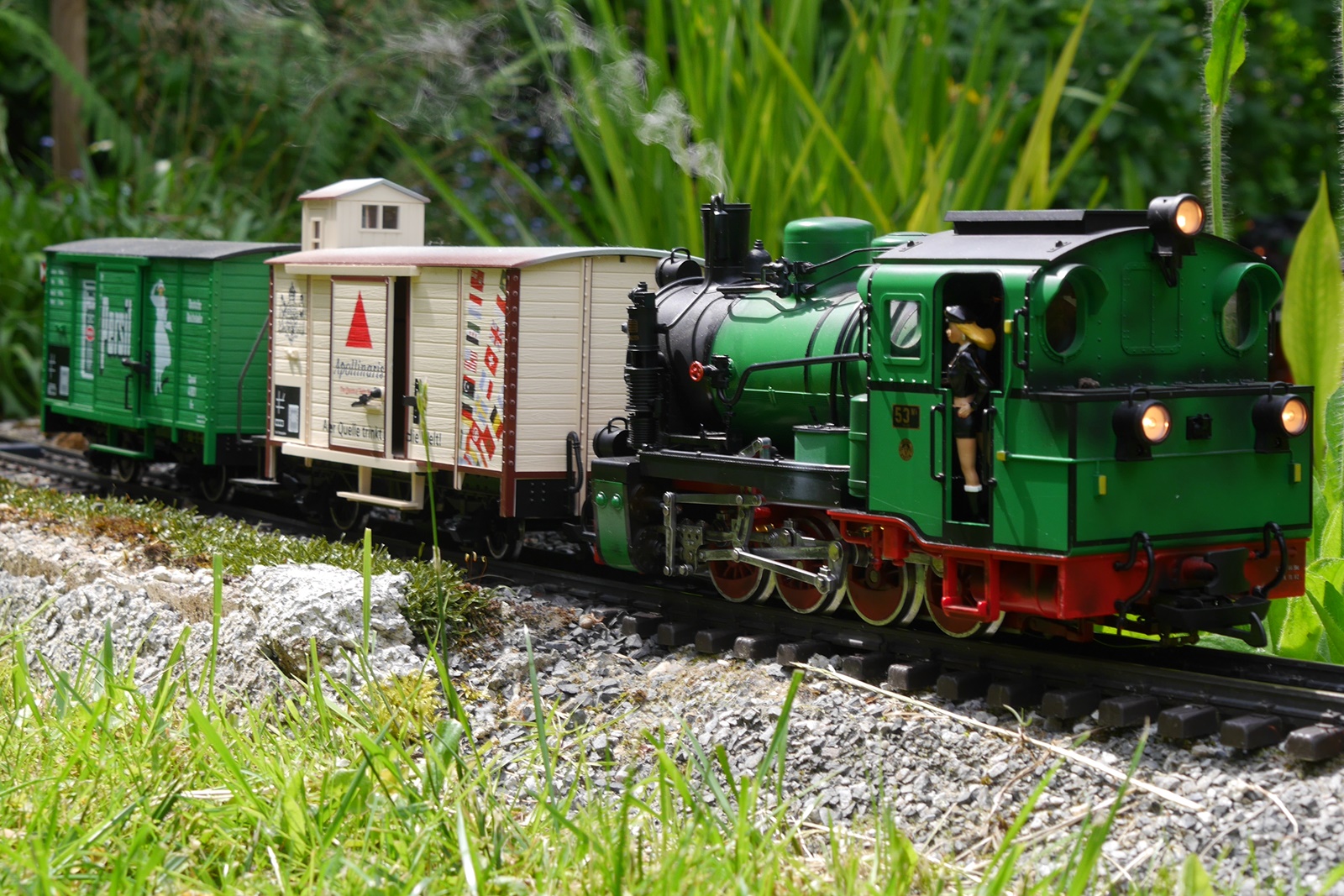 99 6001 mit viel Dampf (offene Ventile)Nicki und Frank S am LokschuppenDraisine (T1) und V52Frank S LeerfahrtFrank S mit Personenzug53Mh mit kleinem GüterzugFrank S mit PersonenzugDoppeltraktion Nicki S und Frank S vor einem PersonenzugDoppeltraktion Nicki S und Frank S vor einem PersonenzugZwei kleine Güterwagen warten im BahnhofSchweineschnäuzchen (VT133) mit GüterzugFrank S vor einem PersonenzugSchweineschnäuzchen (VT133) mit GüterzugPersonenwagen stehen im Bahnhof "Strand"2 Züge abfahrbereit im Bahnhof V51 und Frank S53Mh mit Güterzug53Mh mit GüterzugPersonenwagen "Milka" im BahnhofDiesellok in der Ausweiche am StrandFrank S beim Umsetzen im HafenbahnhofFrank S abfahrbereit im Hafenbahnhof53Mh mit Personenzug auf dem Rückweg vom Hafen53Mh mit Personenzug auf dem Rückweg vom HafenWürtembergische TS5 mit Personenzug (Fahrtrichtung Hafen)Würtembergische TS5 mit Personenzug (Fahrtrichtung Hafen)Würtembergische TS5 im Bahnhof53Mh mit Güterzug im BahnhofPersonenzug abgestellt im BahnhofZugbegegnung in der Ausweiche am Strand53Mh bei nächtlichen Rangierarbeiten im BahnhofBahnhof bei Nacht (leerer Personenwagen)Wendezug im BahnhofV52 rangiert im HafenbahnhofHafenszene auf der Modulanlage