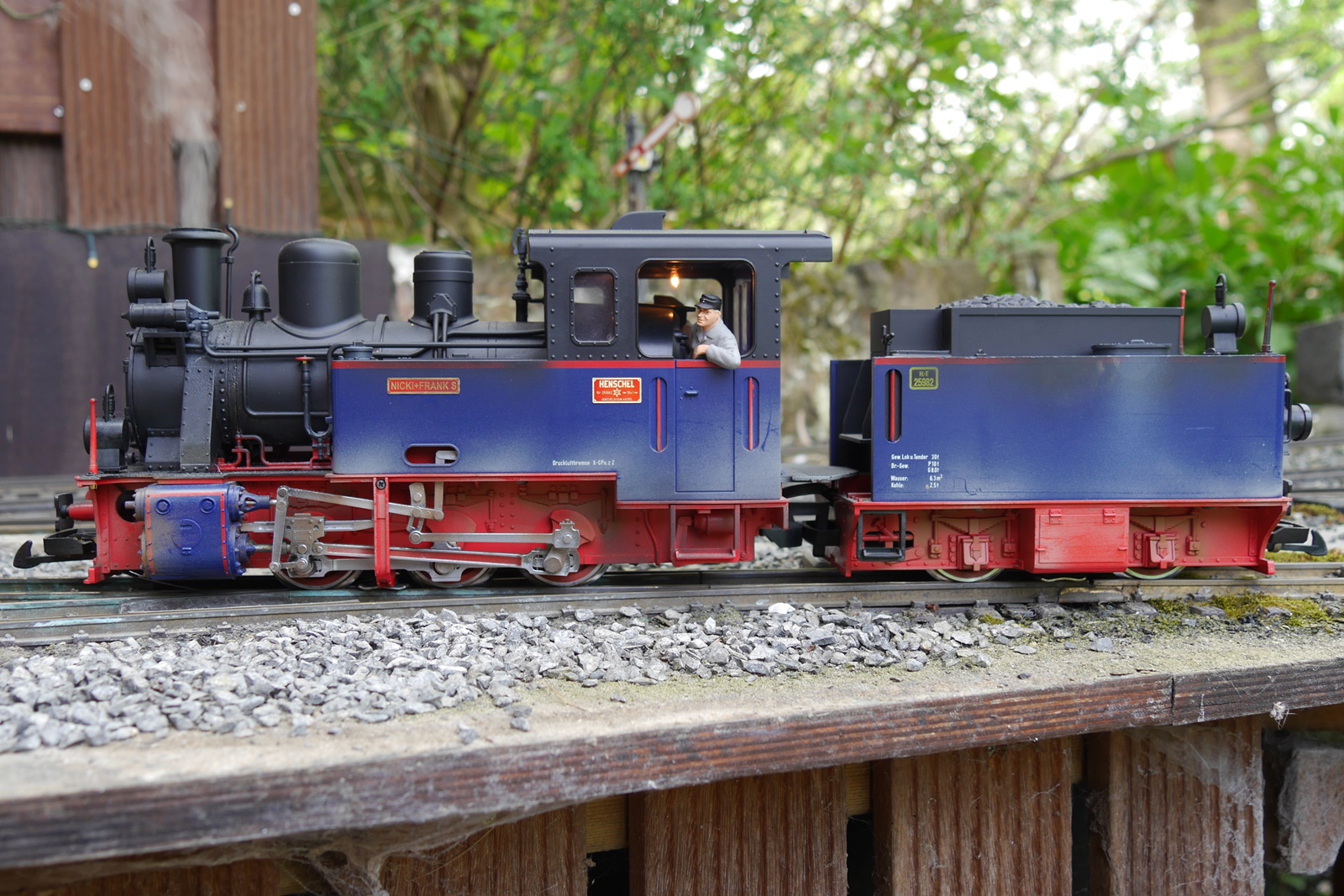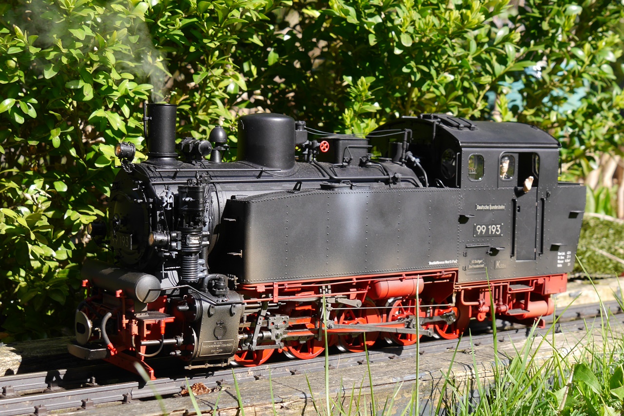 Das Lokmodell stammt von LGB. Bzgl. der Modellmaße gilt das für die 53Mh gesagte. Die Lok ist komplett mit einem Umbausatz von RaabModellbauStudio umgebaut - Details siehe unter "Frank S".