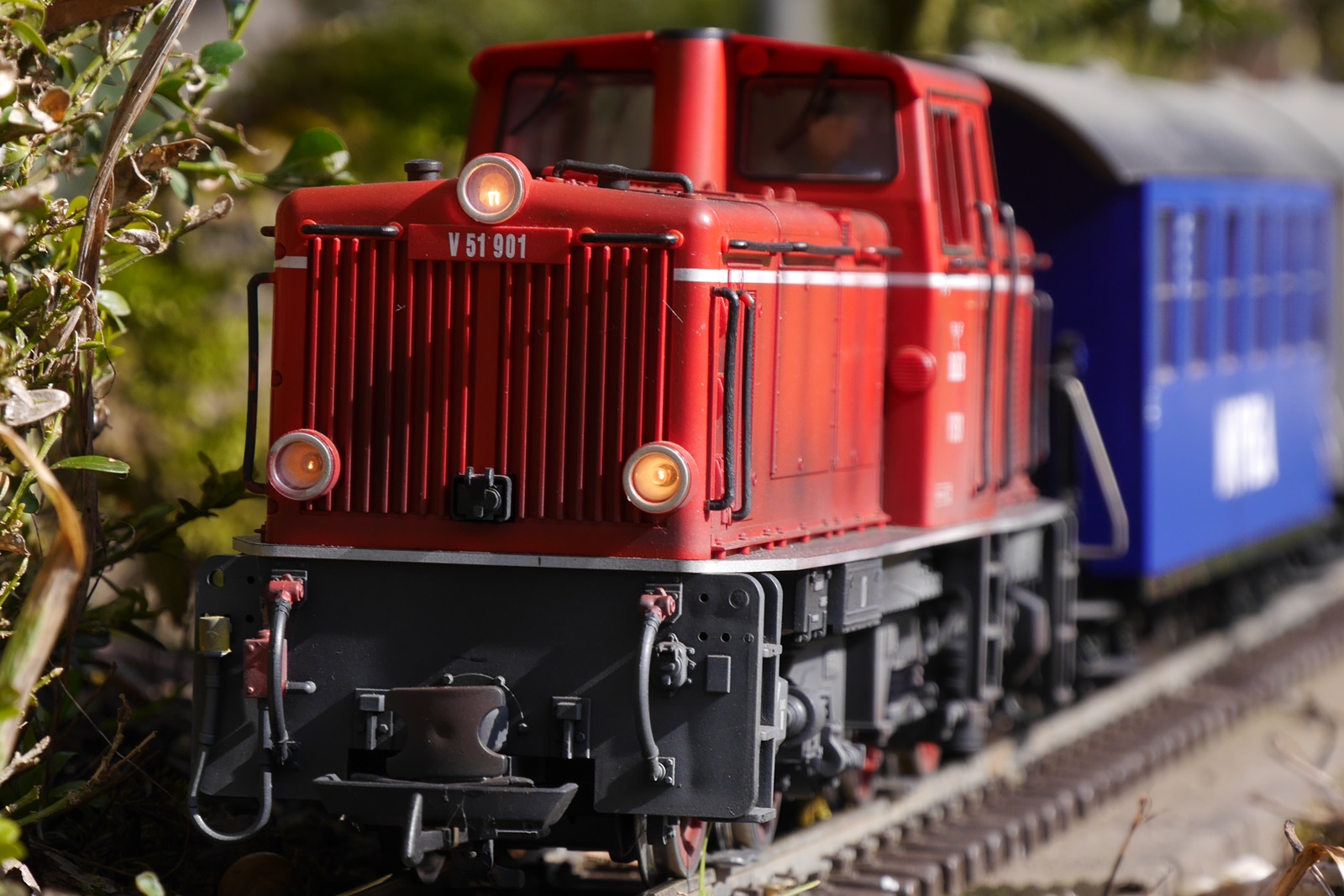 Das Modell ist von LGB und mit vielen Extras, wie Rauch, Rangierlicht und automatischen Kupplungen ausgestattet.