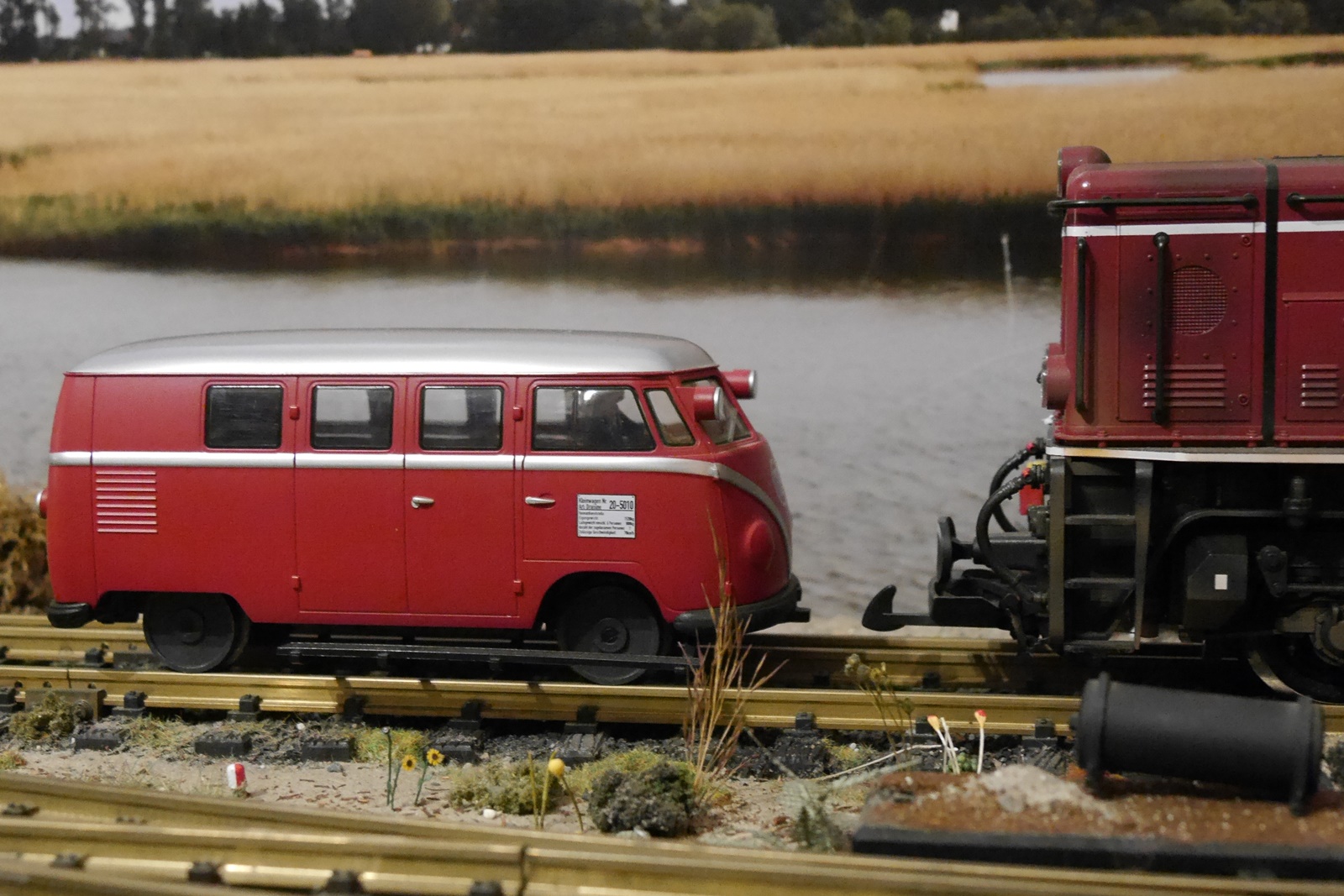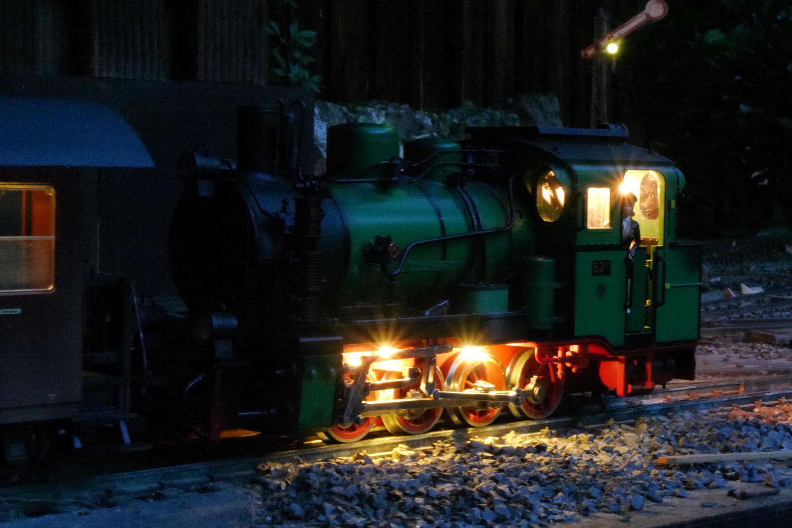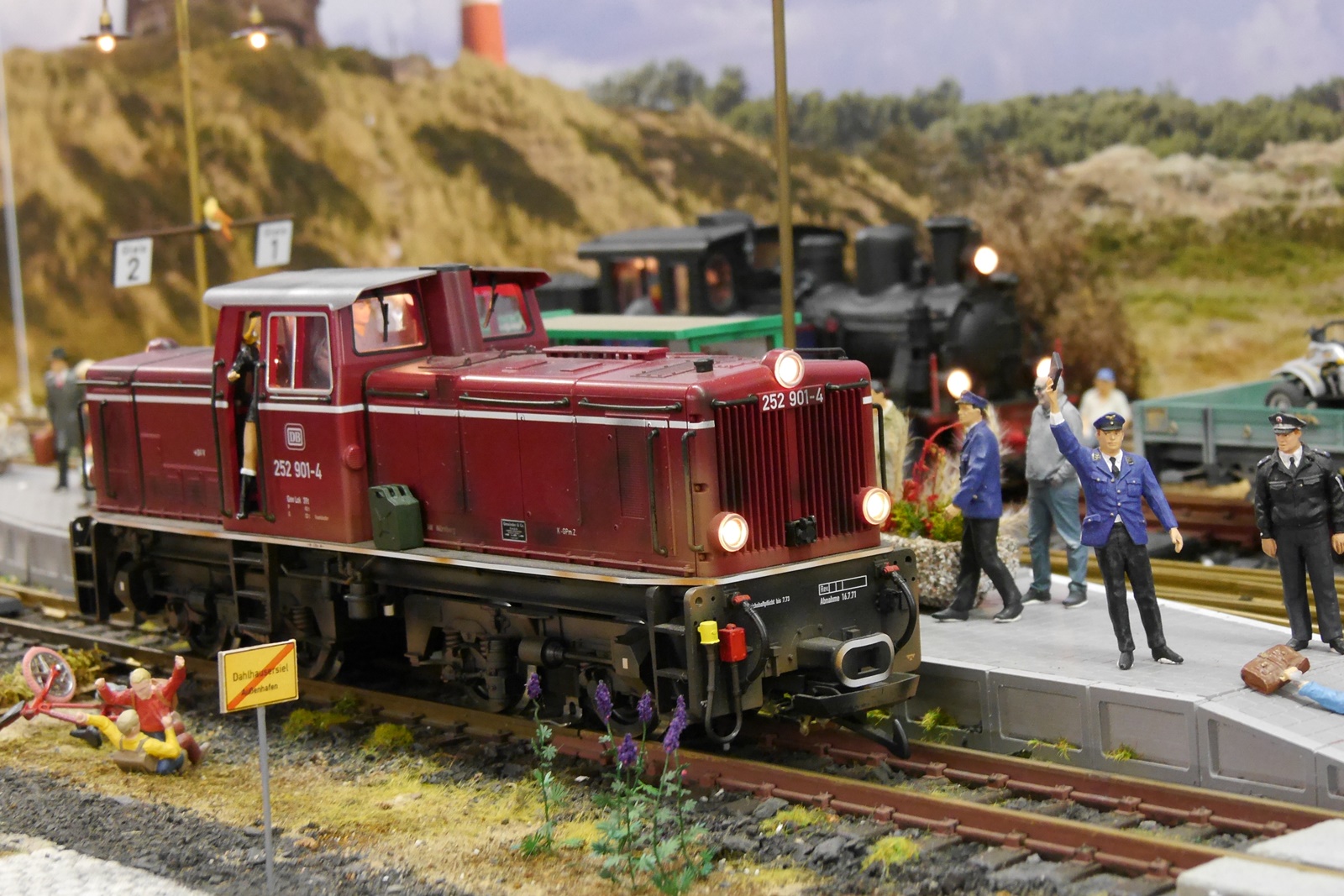 99 6001 mit viel Dampf (offene Ventile)Nicki und Frank S am LokschuppenDraisine (T1) und V52Frank S LeerfahrtFrank S mit Personenzug53Mh mit kleinem GüterzugFrank S mit PersonenzugDoppeltraktion Nicki S und Frank S vor einem PersonenzugDoppeltraktion Nicki S und Frank S vor einem PersonenzugZwei kleine Güterwagen warten im BahnhofSchweineschnäuzchen (VT133) mit GüterzugFrank S vor einem PersonenzugSchweineschnäuzchen (VT133) mit GüterzugPersonenwagen stehen im Bahnhof "Strand"2 Züge abfahrbereit im Bahnhof V51 und Frank S53Mh mit Güterzug53Mh mit GüterzugPersonenwagen "Milka" im BahnhofDiesellok in der Ausweiche am StrandFrank S beim Umsetzen im HafenbahnhofFrank S abfahrbereit im Hafenbahnhof53Mh mit Personenzug auf dem Rückweg vom Hafen53Mh mit Personenzug auf dem Rückweg vom HafenWürtembergische TS5 mit Personenzug (Fahrtrichtung Hafen)Würtembergische TS5 mit Personenzug (Fahrtrichtung Hafen)Würtembergische TS5 im Bahnhof53Mh mit Güterzug im BahnhofPersonenzug abgestellt im BahnhofZugbegegnung in der Ausweiche am Strand53Mh bei nächtlichen Rangierarbeiten im BahnhofBahnhof bei Nacht (leerer Personenwagen)Wendezug im BahnhofV52 rangiert im HafenbahnhofHafenszene auf der Modulanlage