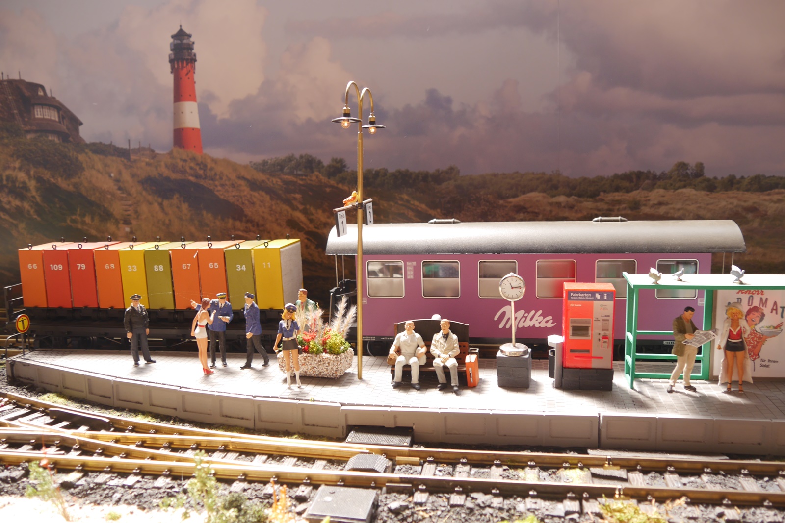 Wir waren mit der neuen Nordseeanlage zu Gast und hatten das Glück, dass wir zu den Modulen unseres Nachbarn (Stuhli / Friedhelm Stuhlmann) spontan und provisorisch einen Übergang schaffen konnten, so dass Loks und Wagen etwas mehr Auslauf hatten.