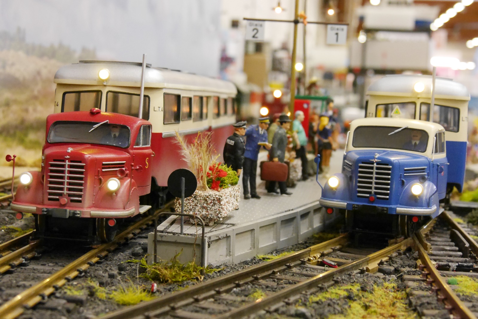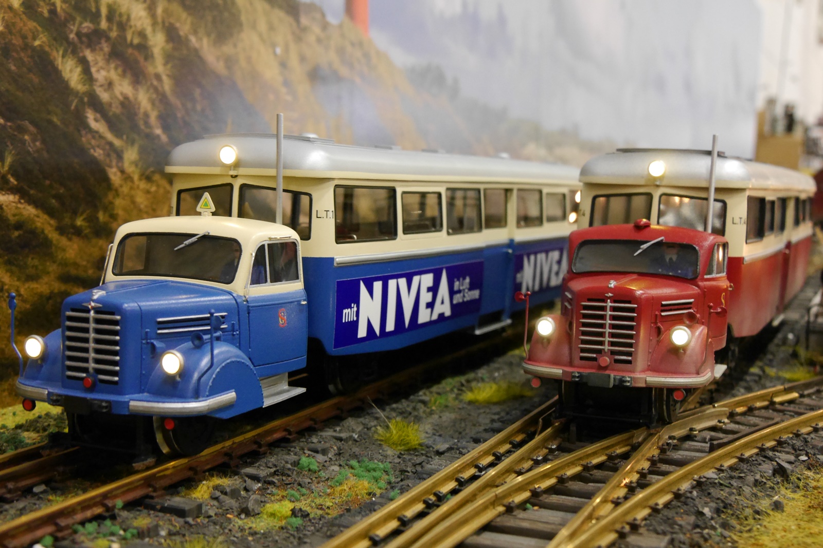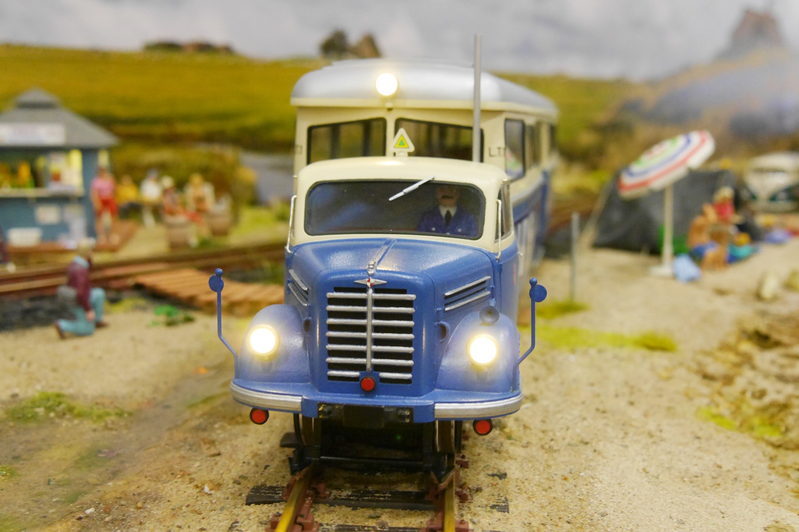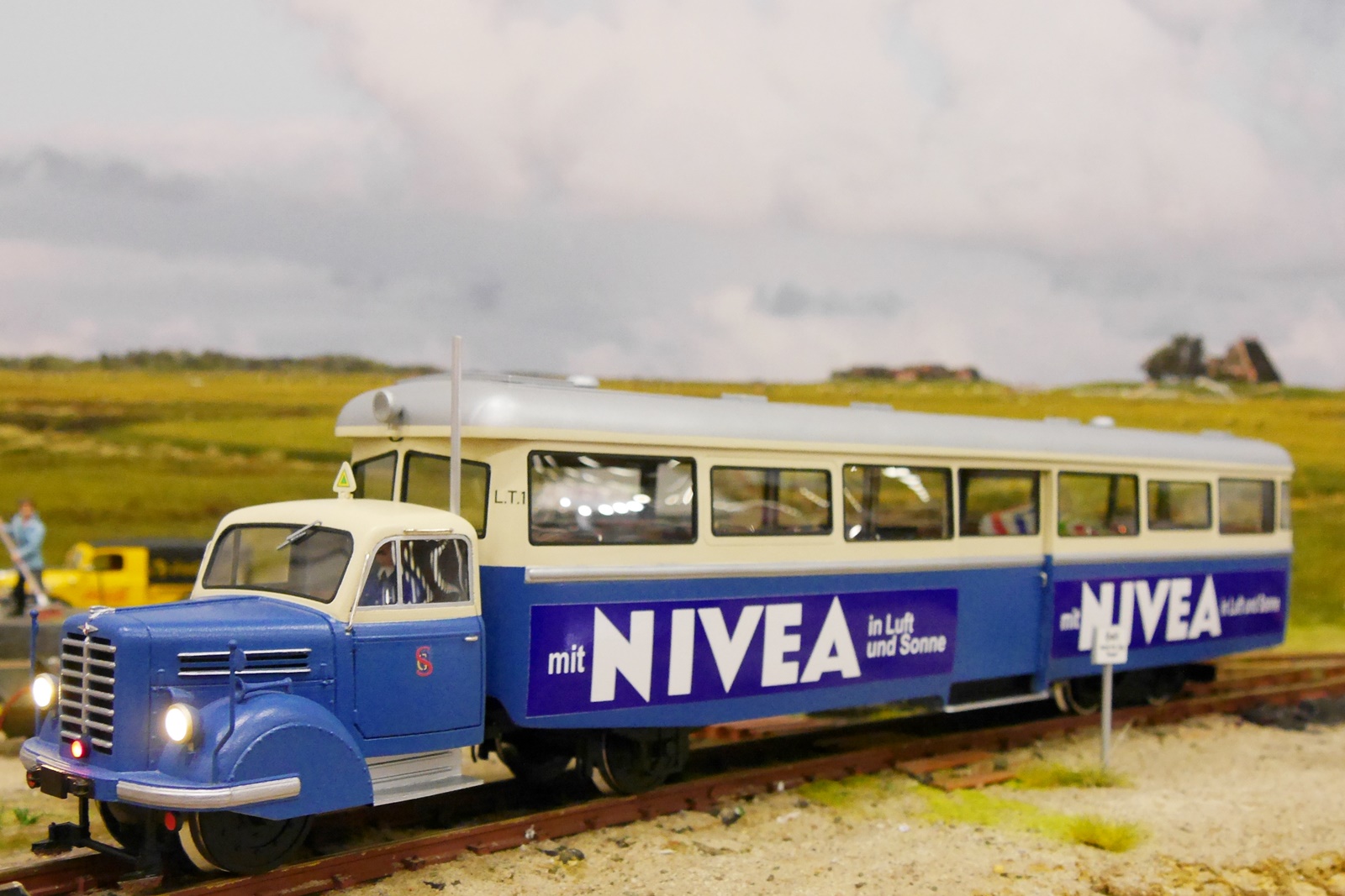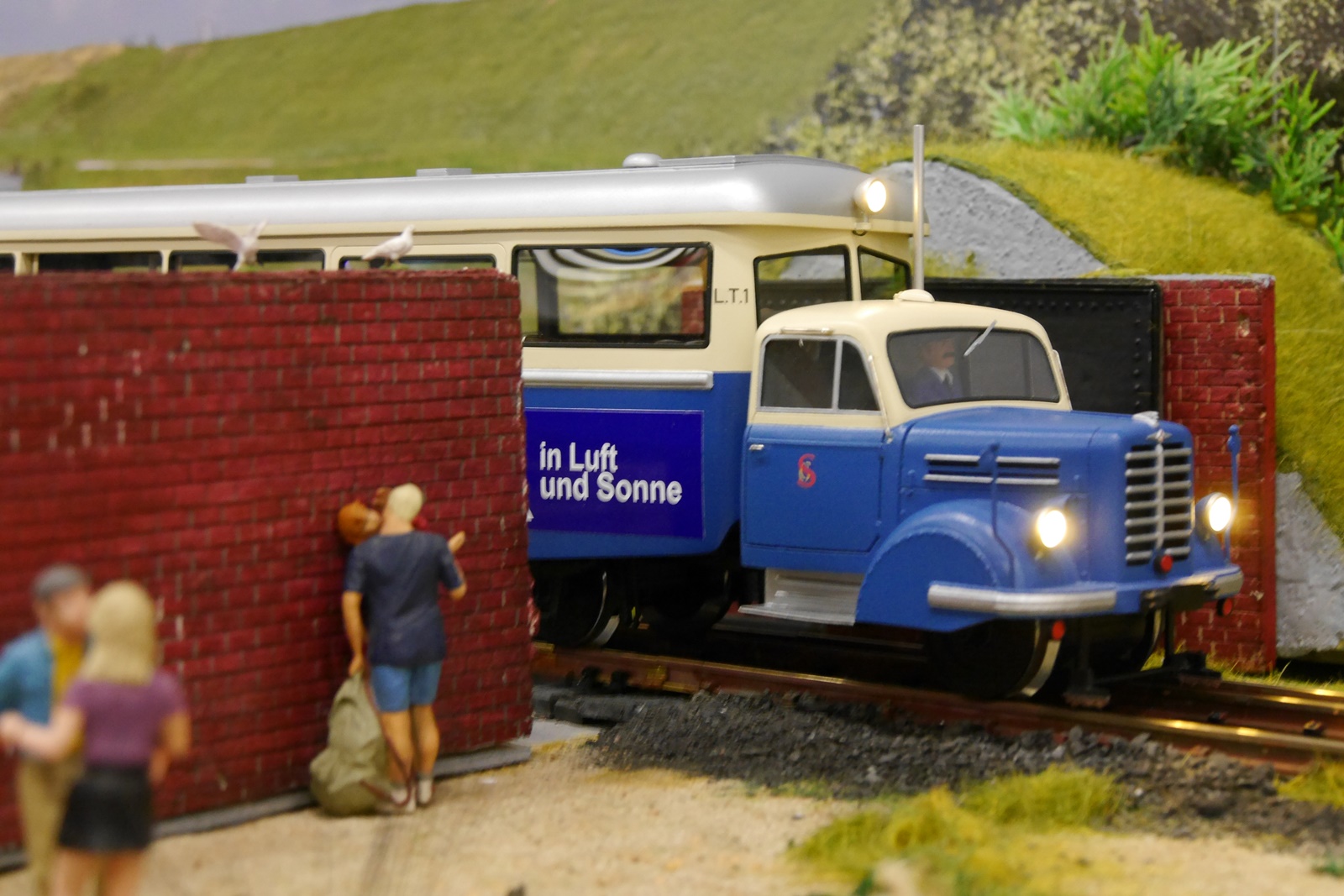 Folgende Bilder stammen von den drei Messetagen. Insbesondere der neue blaue Borgward Triebwagen war viel im Einsatz. Das werden wohl die ersten und letzten Bilder von dem Fahrzeug in diesem sauberen Zustand sein! Der blaue Leichttriebwagen (LT) ist unmittelbar nach der Messe einer Alterung unterzogen worden!