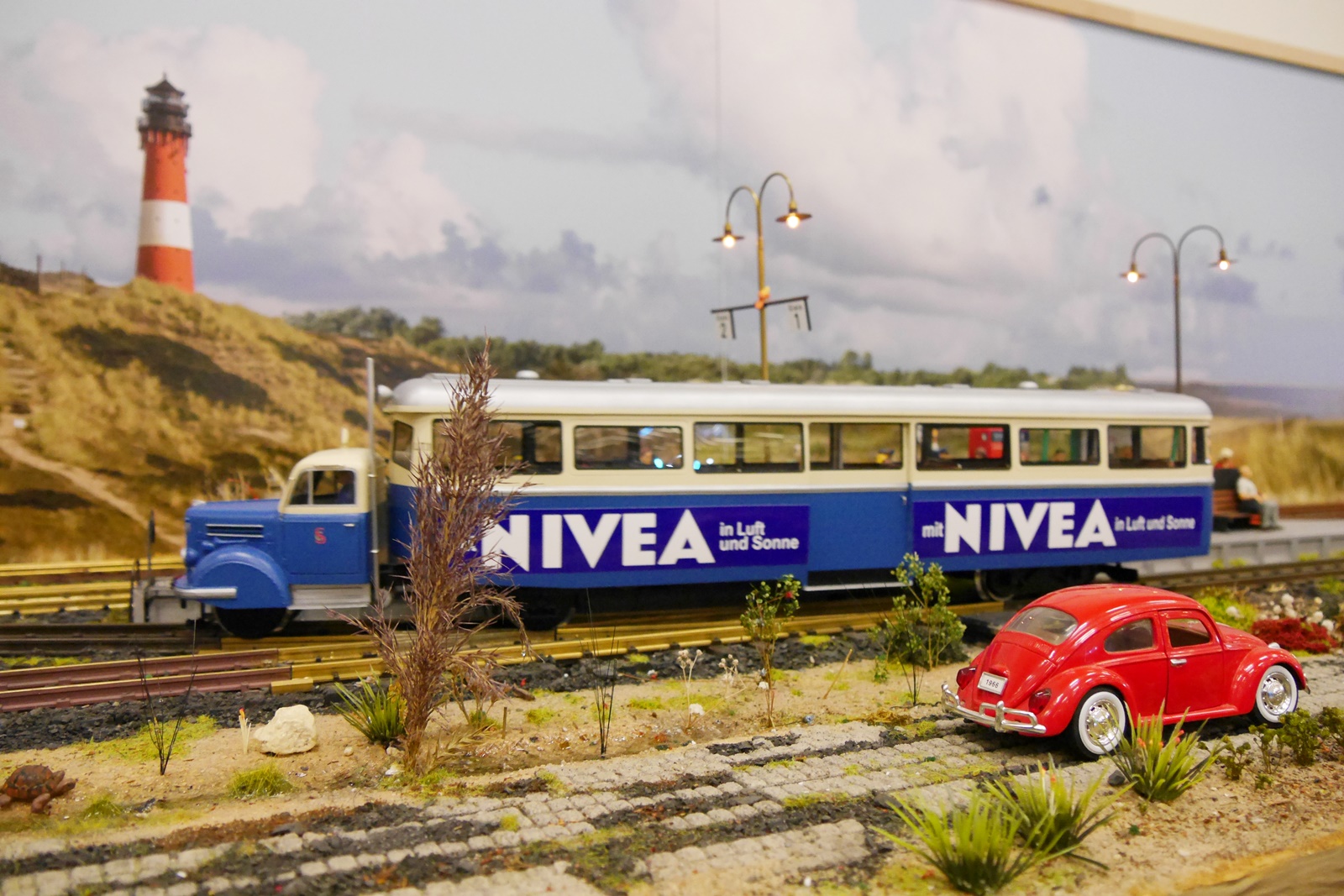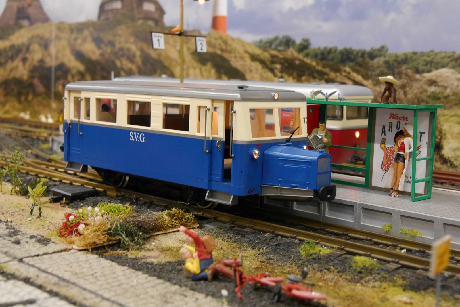 Von Thorsten Schöler (11kV) war das Schweineschnäuzchen in der blau weißen sylter Lackierung im Einsatz. Das passte hervorragend zu den beiden Leichtriebwagen.