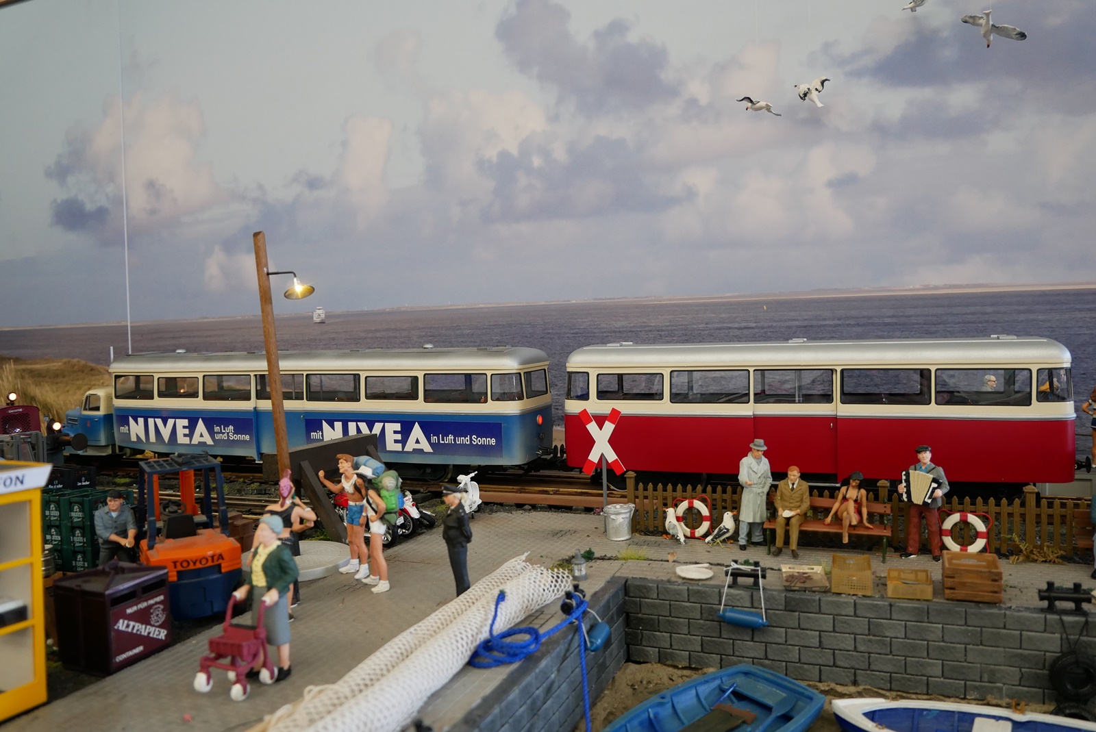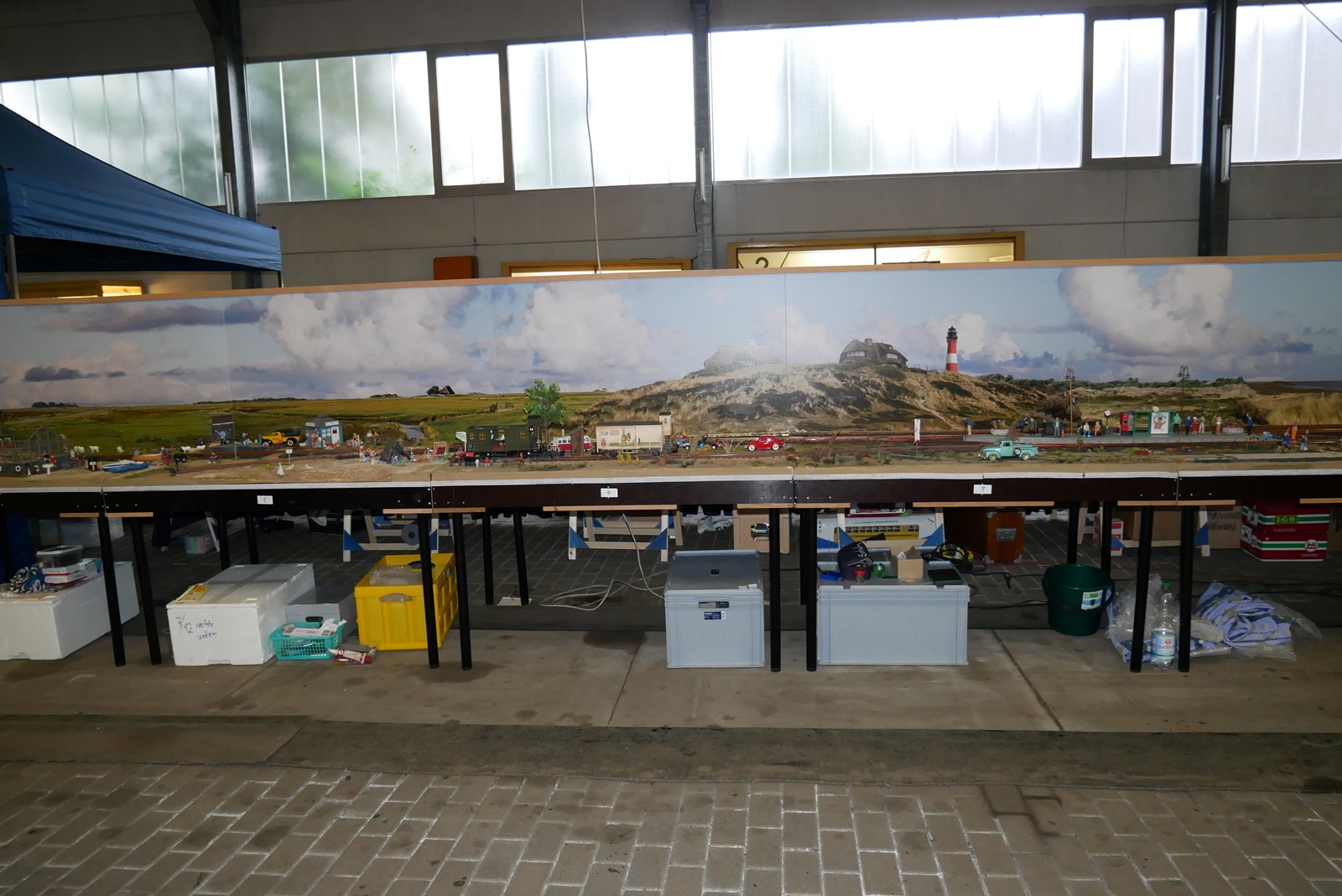 Die Nordseeanlage war wieder zu Gast und stand recht zentral in der großen Wagenhalle. Da die Anlage inzwischen auf 8 Module angewachsen ist, reichte der Platz am alten Standort in der Halle nun nicht mehr.