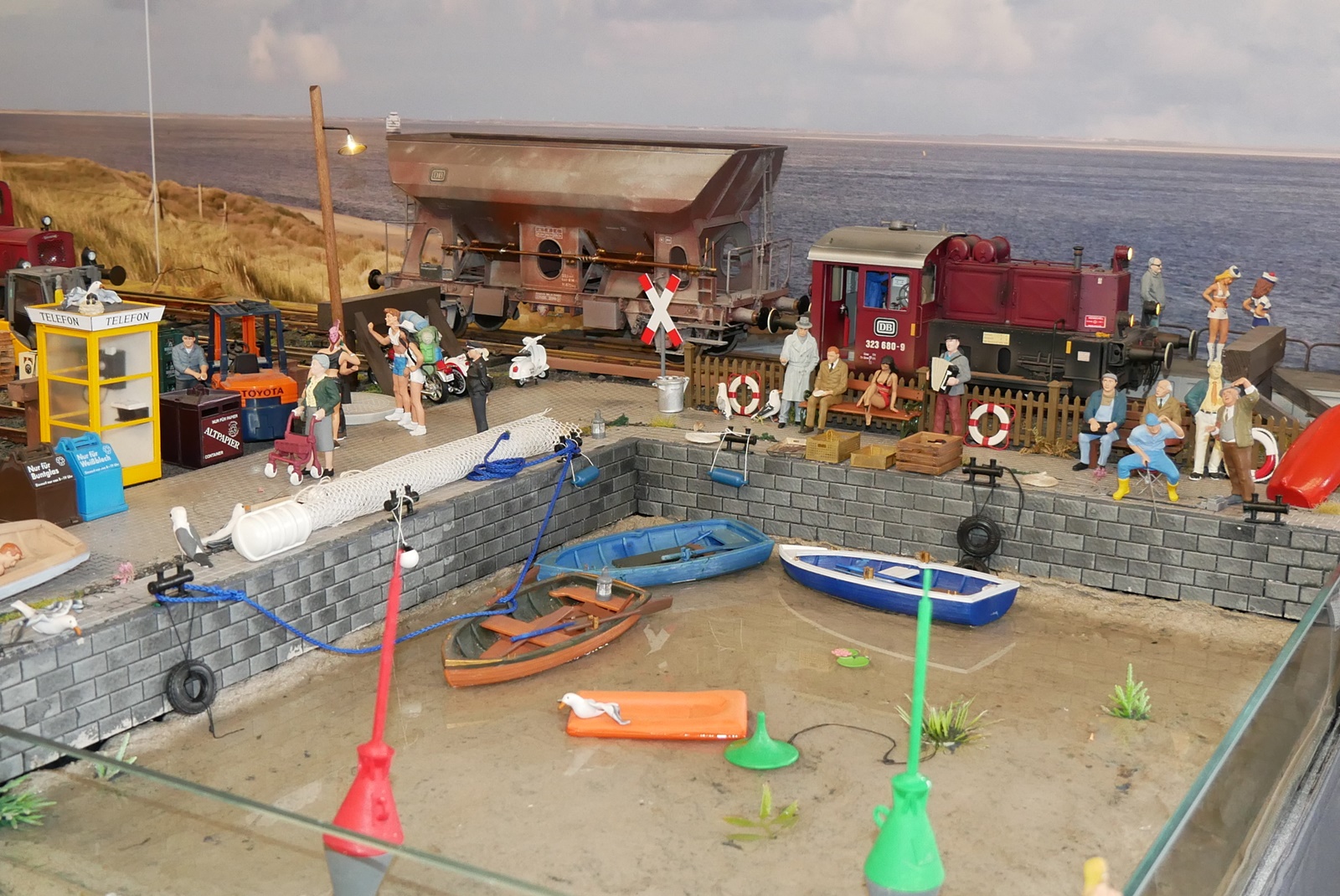Die folgenden Fotos sind von der Nordseeanlage, die jetzt aus 8 Modulen a 1,40 m Länge besteht. Neu war das Hafenbecken, welches mit echtem Wasser gefüllt war - oder nicht; wir haben versucht die Gezeiten nachzubilden und um 16:43 Uhr war Hochwasser.