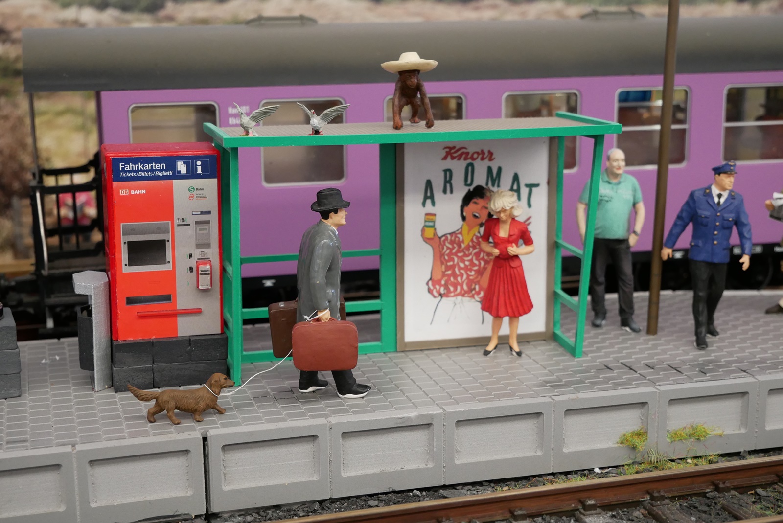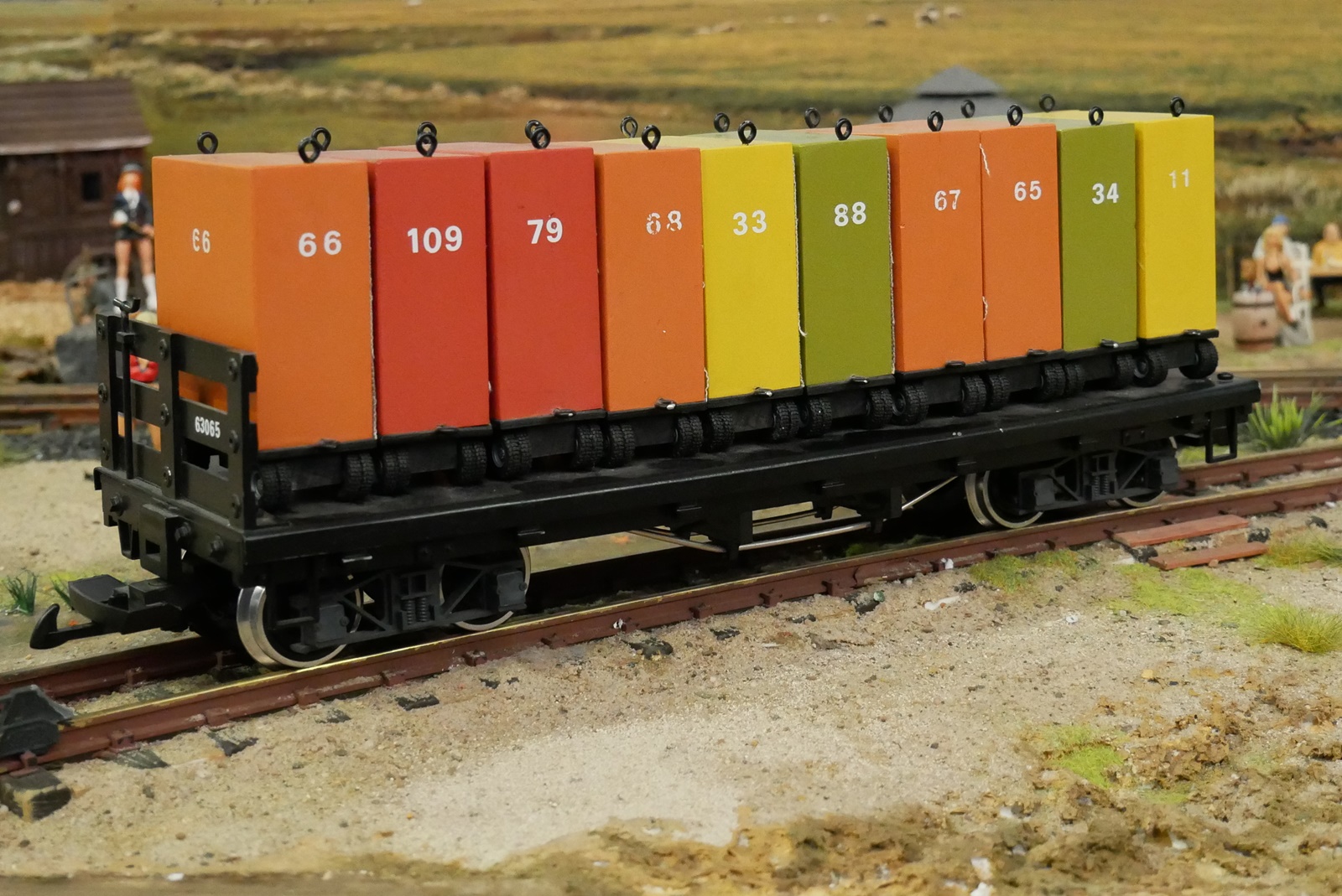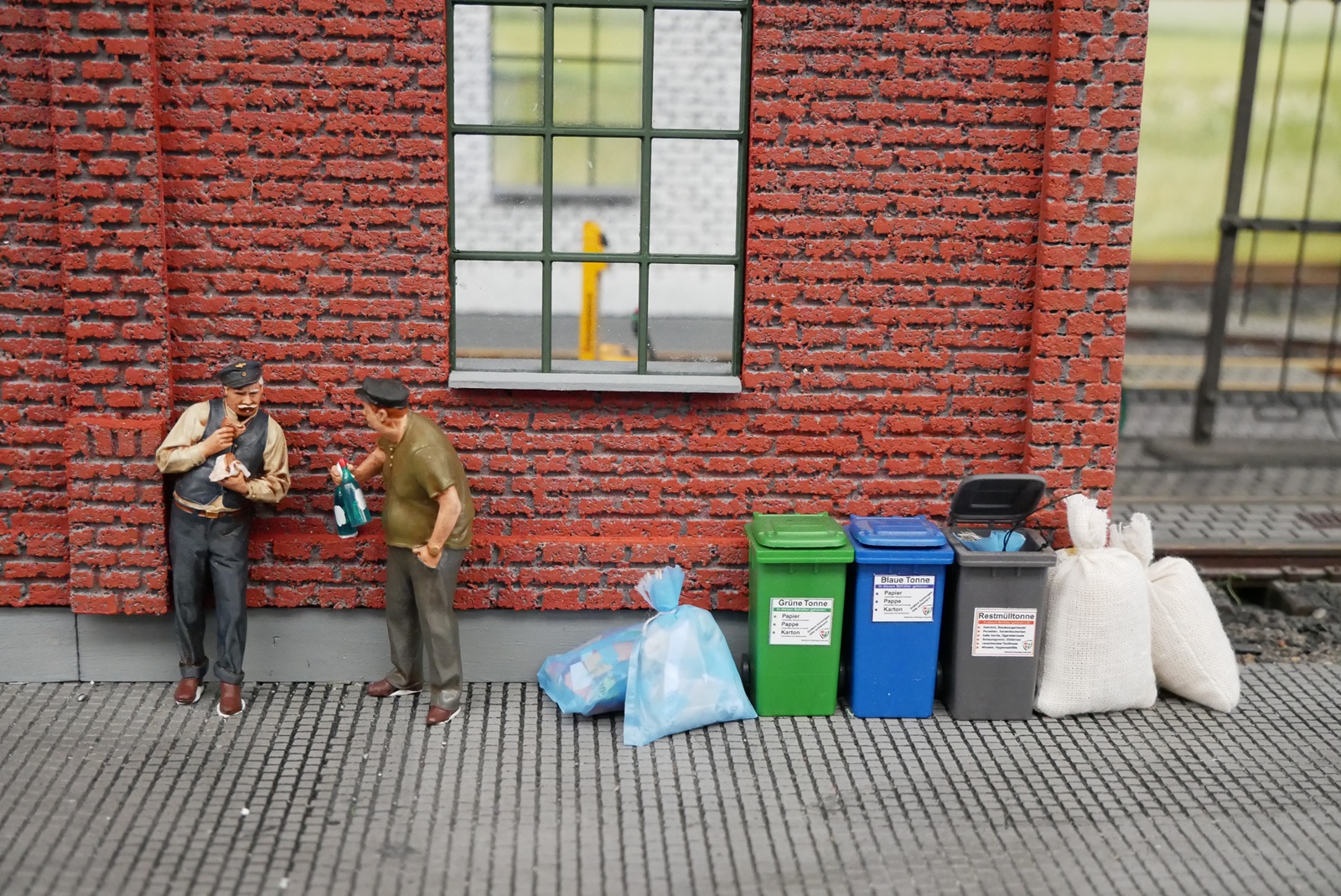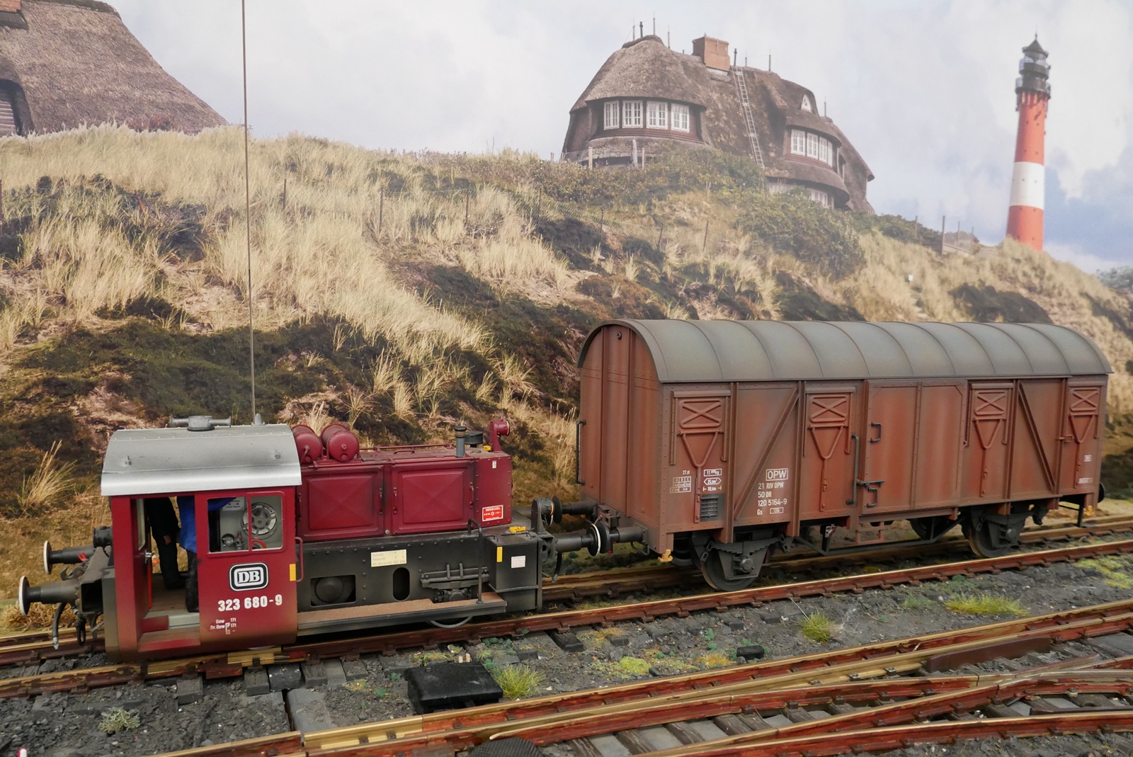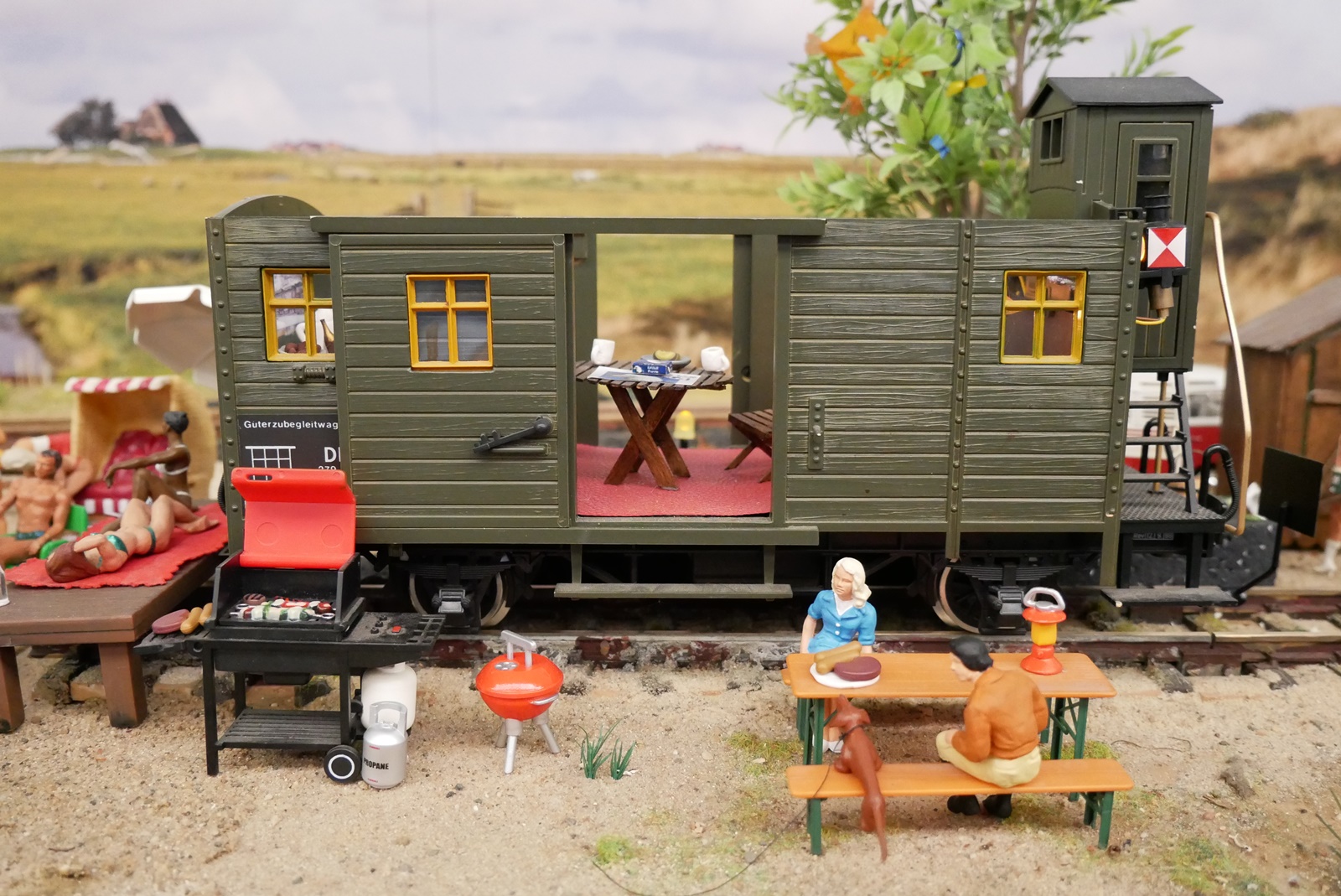 Kurze Zeit war ein Regelspurgüterwagen mit Wechselbehältern und ein lustiger "Badezug" - Erbauer Heiko Funk - zu Gast.